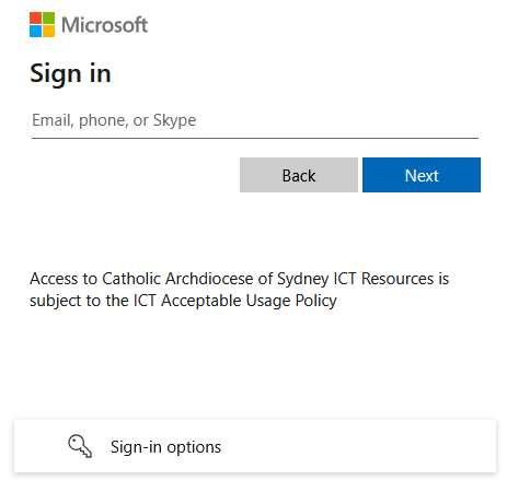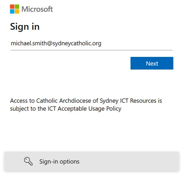 You will be prompted to log on via Microsoft sign-in using your work email address and password.