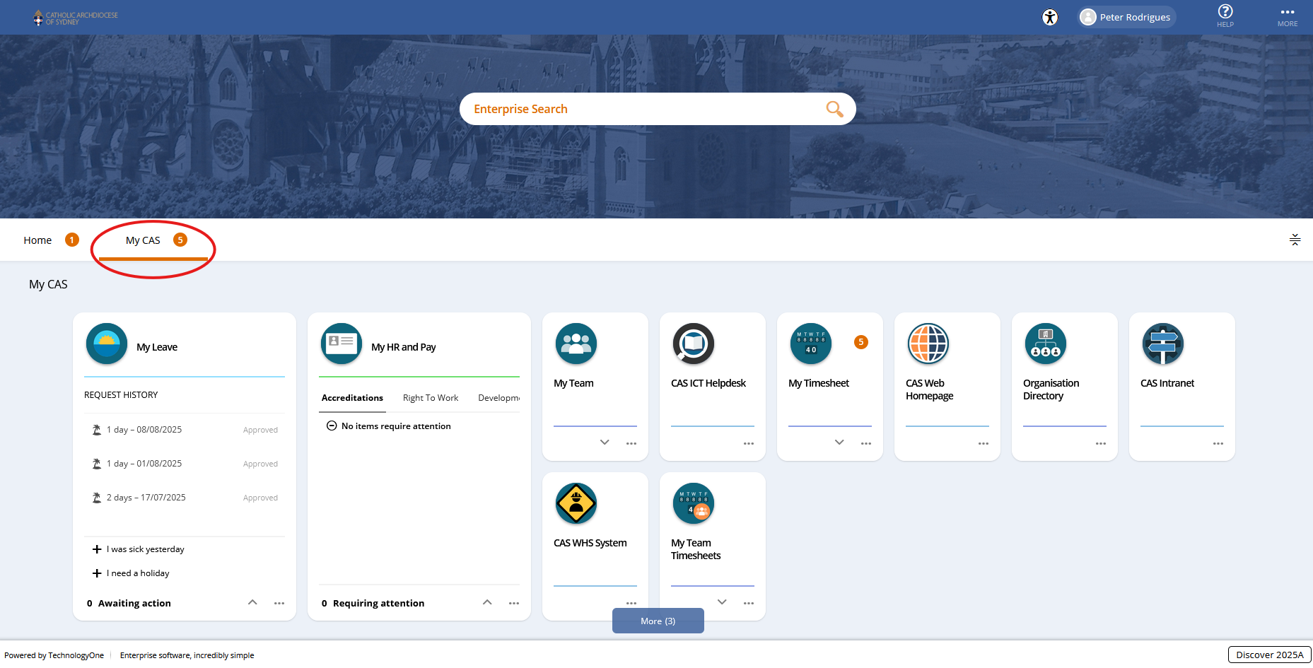The Employee Self Service portal is directly integrated with the Technology One Finance and HR/Payroll system, and is called 'CiAnywhere'.